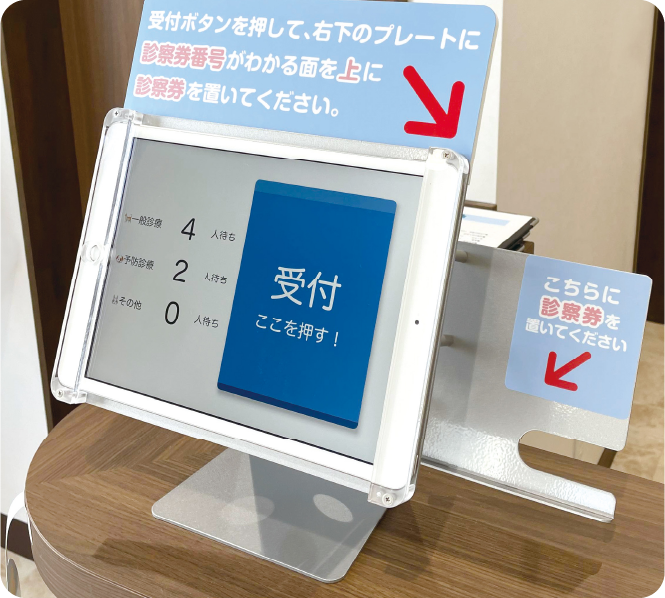 これまで通り直接お越しいただいての受付となりますが、診察券を機械に通して頂く必要があります。