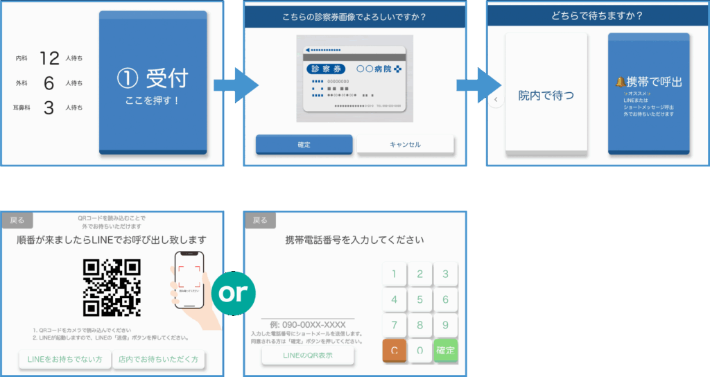 操作画面に従って、たった4ステップで順番待ちが行えます。